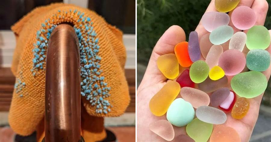 用醋和海鹽清潔我的銅水槽。幾個小時后,這些鹽晶體在我用來擦干的抹布上長出來了。