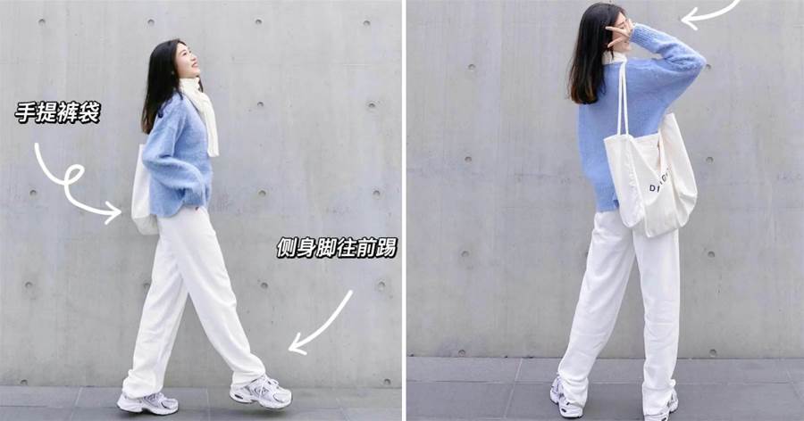 這個姿勢小個子同樣可以參考,讓人像呈現在畫面的對角線上,妥妥的拉長身材比咧,顯瘦又顯身材。